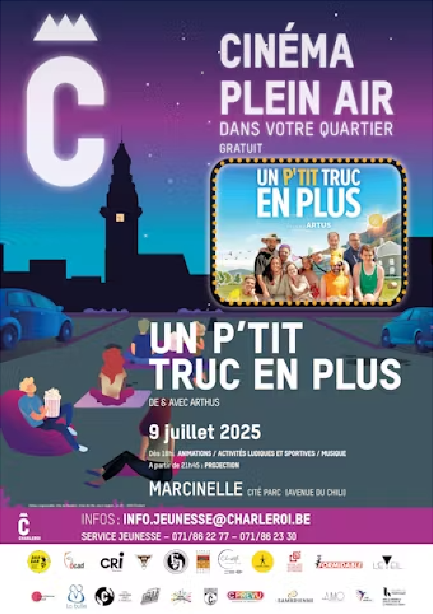 Le mercredi 09/07 à Marcinelle : UN P’TIT TRUC EN PLUS – Plus d’infos : https://www.charleroi.be/…/du-cinema-en-plein-air-dans…